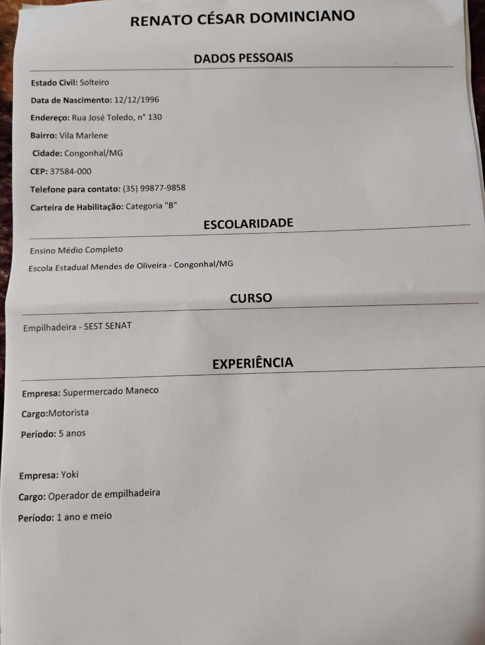 domicianorenato778 Invite Favoritar Sobre o Candidato Educação E Ensino médio completo Mendes de Oliveira Experiências O Operador empilhadeira 12/12/2023 - 02/10/2025 Yoki